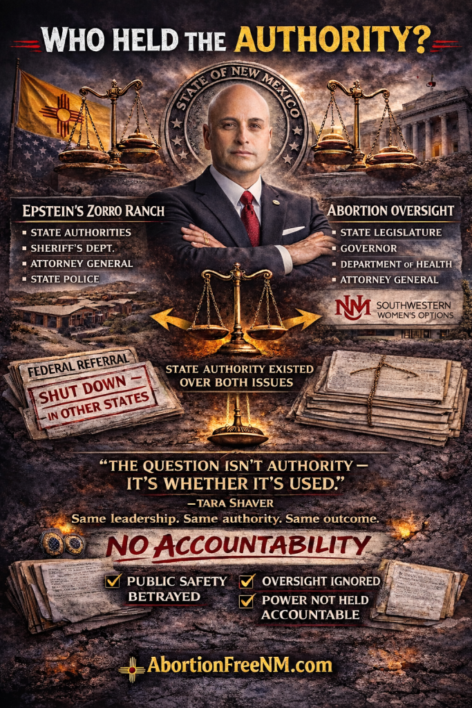 If questions exist regarding how state authority was exercised in the context of Zorro Ranch, a related question emerges: how were similar oversight responsibilities handled in other areas where concerns were formally raised—including in the area of abortion-related practices?To fully understand the scope of oversight questions in New Mexico, it is necessary to examine how related concerns were addressed at the federal level—and what followed.
